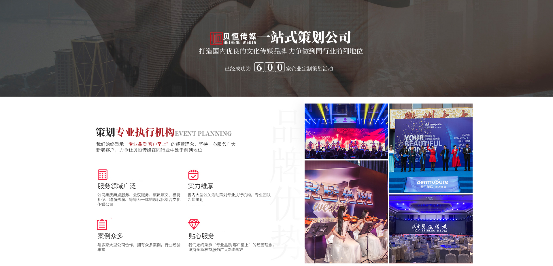 合 肥 貝 恒 文 化 傳 媒 專注·專業(yè)·專心·效率   合肥貝恒文化傳媒有限公司2017年成立于安徽·合肥,是省內(nèi)大型公關(guān)活動策劃專業(yè)執(zhí)行機(jī)構(gòu),公司集慶典服務(wù)、會議服務(wù)、演員演藝、模特禮儀、路演巡演、展會特裝、廣告制作、設(shè)備租賃、舞美策劃、企業(yè)形象宣傳等為一體的現(xiàn)代化綜合文化傳媒公司,我們始終秉承“專業(yè)品質(zhì)客戶至上”的經(jīng)營理念,堅持全...